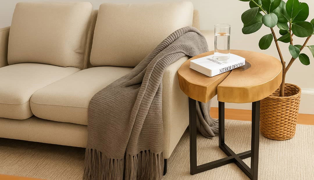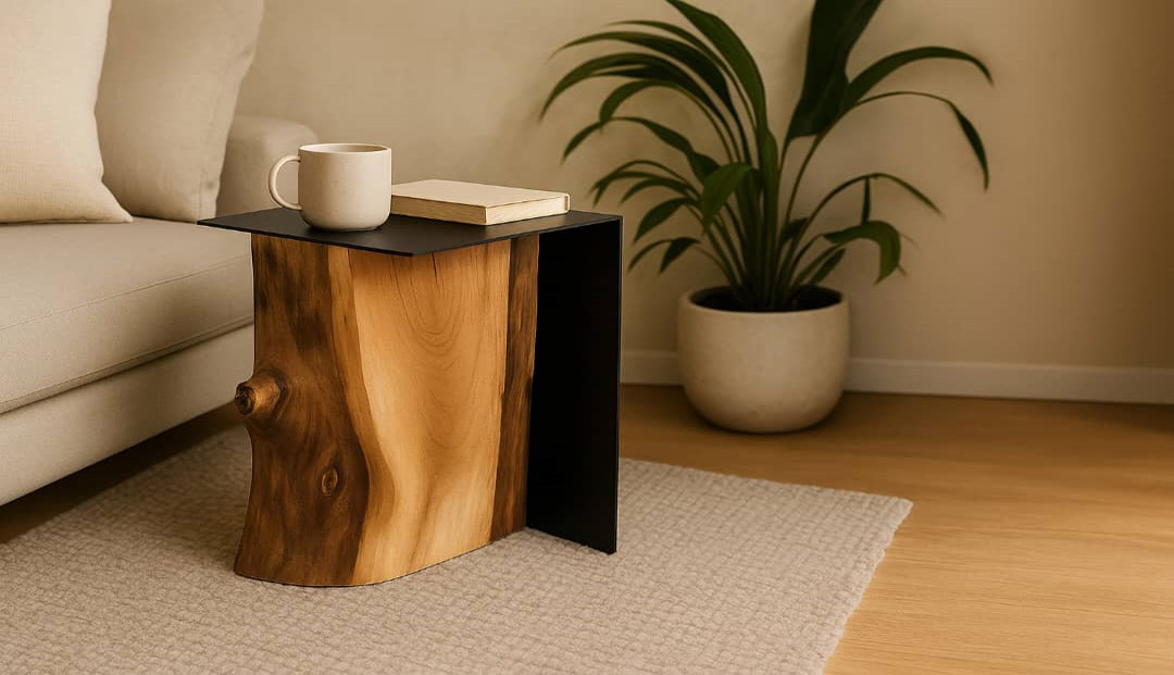 میز عسلی روستیک مدل برکه | چوب توسکا و پایه فلزی – برند میزچوب