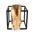 پایههای میز از پروفیل فلزی ساخته شده و با پوشش مشکی کورهای استاتیک رنگآمیزی شدهاند. این نوع رنگ علاوه بر زیبایی ظاهری، مقاومت بالایی در برابر خط و خش و زنگزدگی دارد. همین ویژگی باعث میشود میز باکس برای سالها کیفیت اولیه خود را حفظ کند و همیشه مثل روز اول بدرخشد. این پایهها در کنار سطح گرم و طبیعی چوب، جلوهای مدرن و مینیمال ایجاد میکنند. آنچه میز عسلی باکس را خاص میکند، استفاده از چوب روستیک است. رگهها، گرهها و بافت طبیعی چوب به هر میز شخصیتی منحصربهفرد میدهد. هیچ دو میزی دقیقاً شبیه هم نیستند و همین ویژگی، ارزش این محصول را چند برابر میکند. در واقع شما نهتنها یک میز چوبی پایه فلزی خریداری میکنید، بلکه قطعهای هنری و خاص وارد خانه خود میکنید.